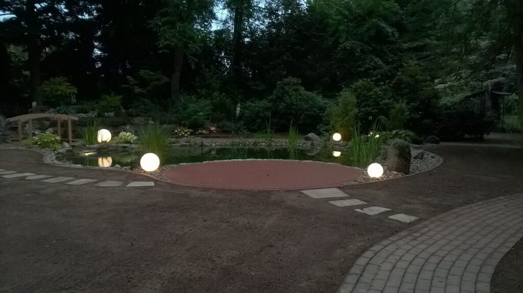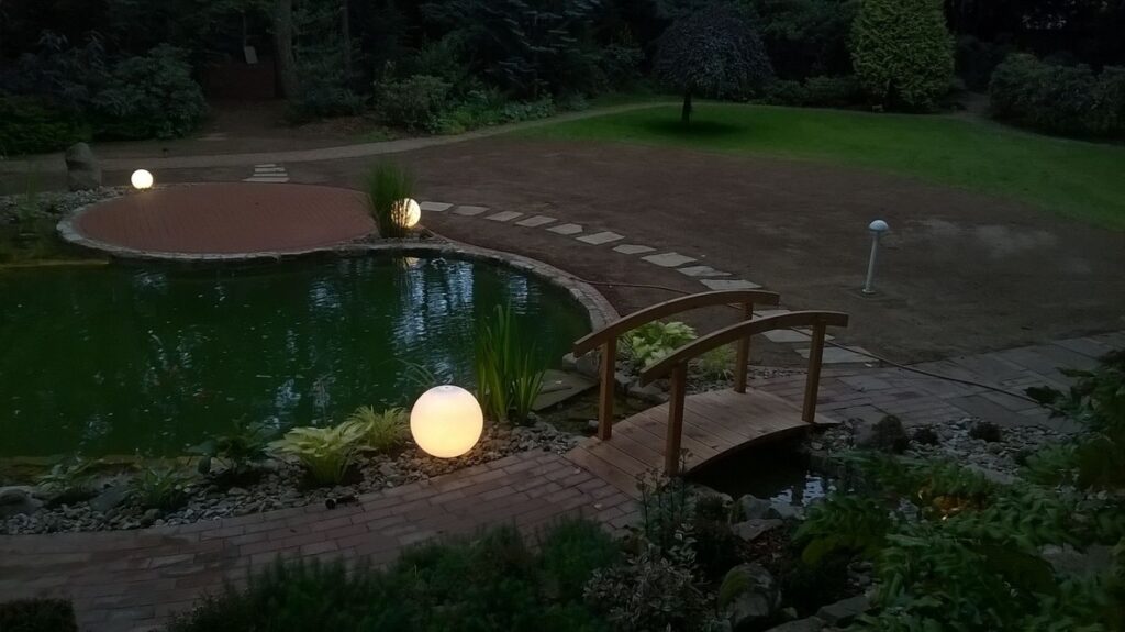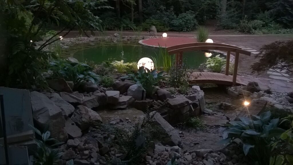 Auf Wunsch ergänzen wir Ihre Teichanlage um Wasserfall oder Bachlauf, einen Steg oder eine Stegterrasse als attraktiven Sitzplatz sowie stimmungsvolle Beleuchtung für besondere Akzente bei Tag und Nacht. Selbst den passenden Fischbesatz können wir liefern.