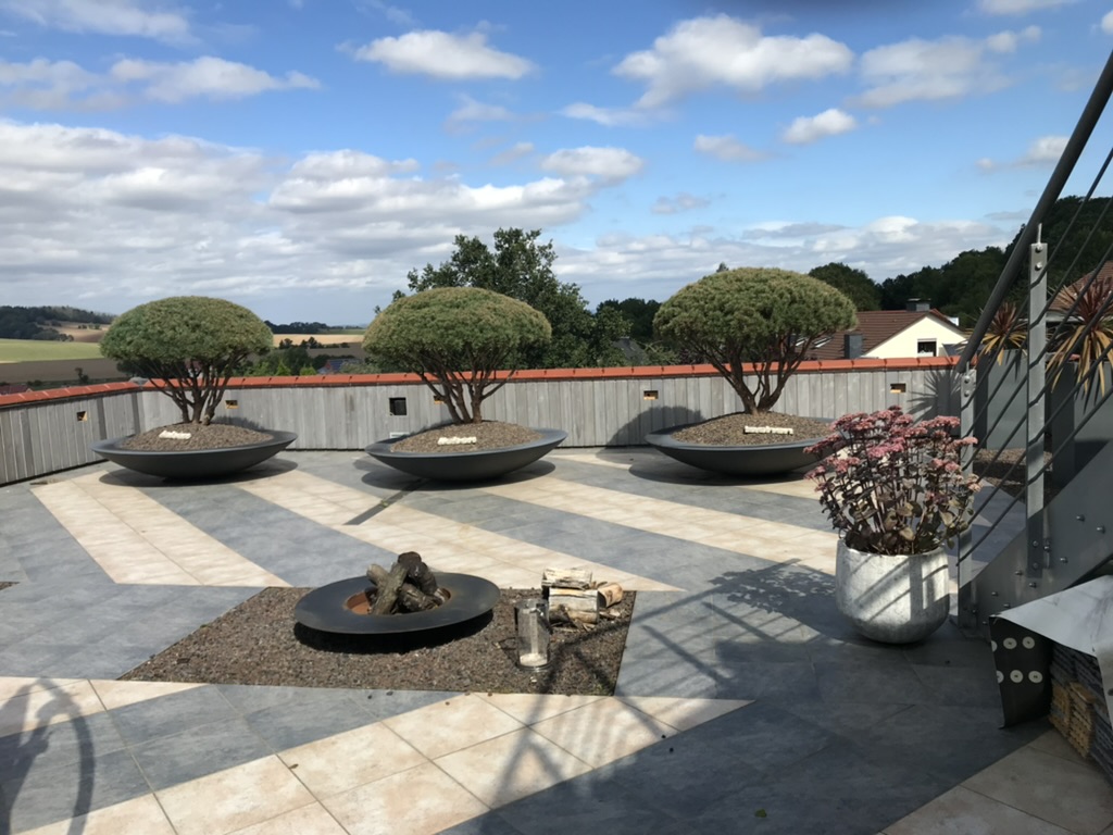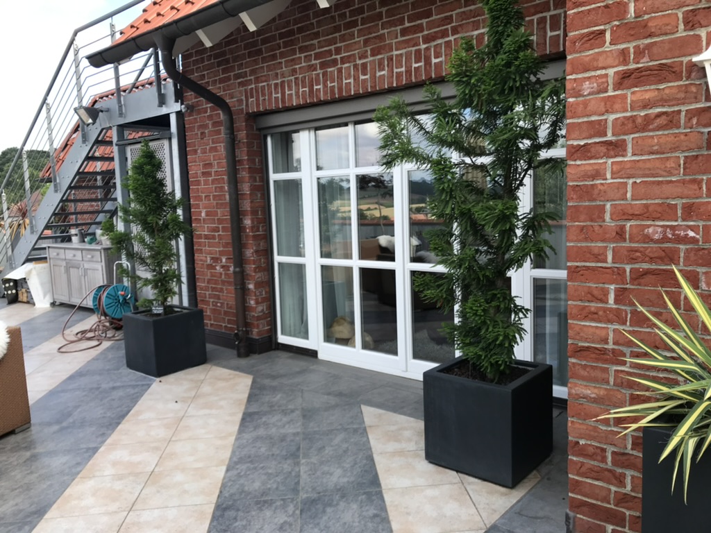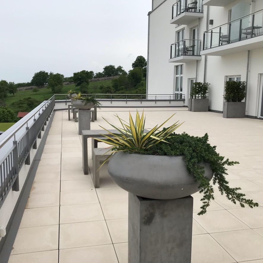 Kübelbepflanzungen setzen stilvolle Akzente und verleihen Eingangsbereichen, Terrassen und Gärten eine ganz persönliche Note. Ob klassisch mit Terrakotta und üppiger Blütenpracht oder modern mit klaren Linien in Gefäßen aus Terracotta, Cortenstahl, Beton oder Fiberglas – wir gestalten individuelle Pflanzkonzepte, die Architektur und Umgebung harmonisch ergänzen.
