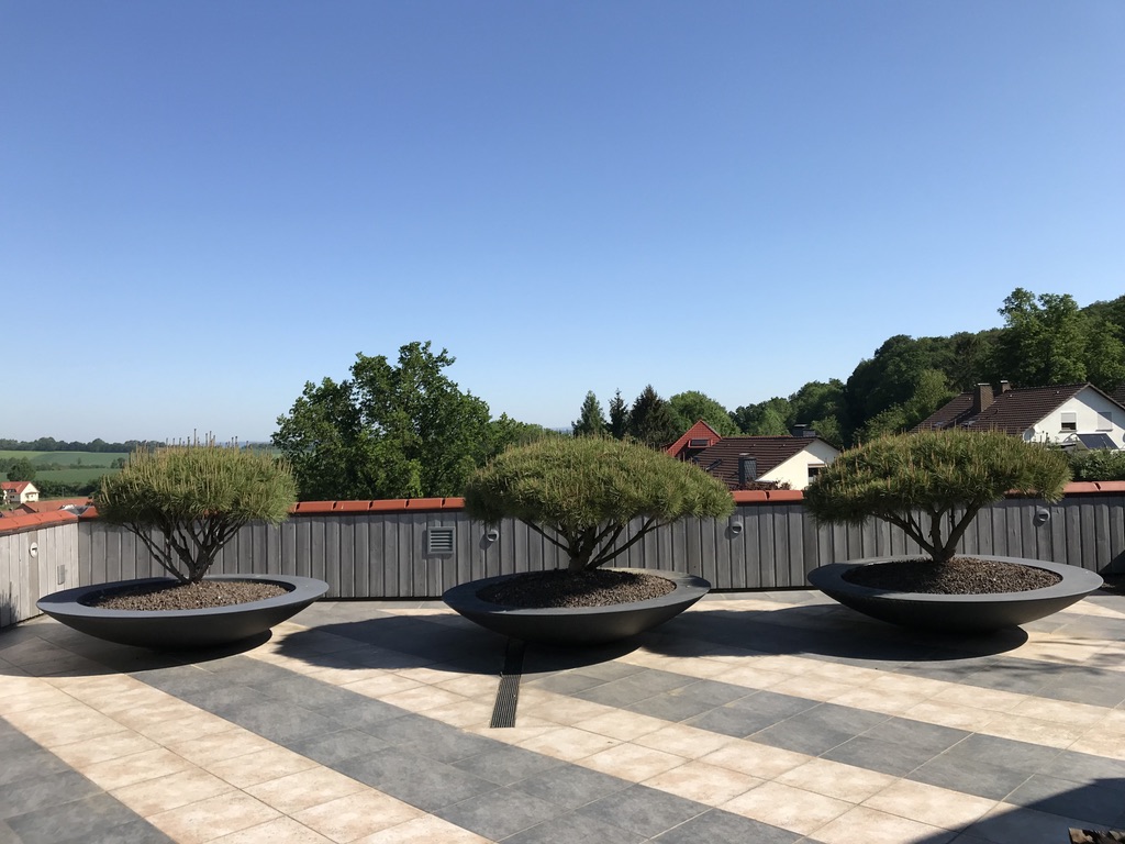 Mit einem sicheren Gespür für Formen, Farben und Proportionen kombinieren wir hochwertige Gefäße mit abgestimmter Bepflanzung – je nach Wunsch mediterran oder frosthart. Das passende Pflanzgefäß liefern wir natürlich auch.