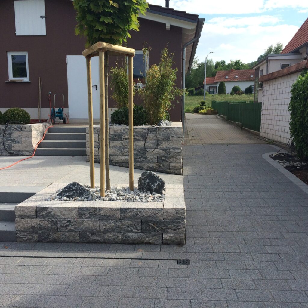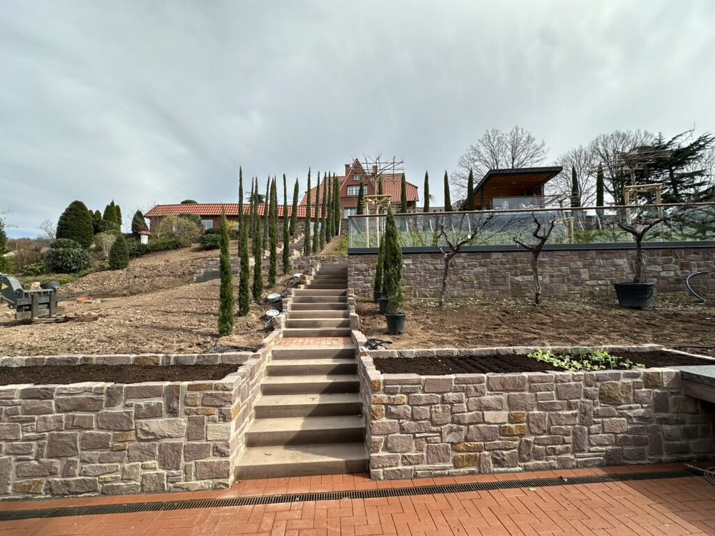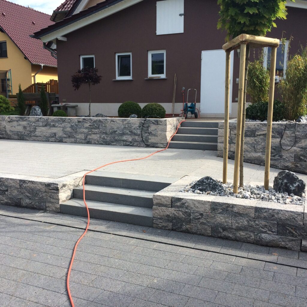 Ob moderne oder natürliche Gartentreppen, stabile Stützmauern oder individuell gefertigte Natursteinarbeiten – jedes Projekt wird sorgfältig geplant und präzise ausgeführt. Hochwertige Materialien, fachgerechte Fundamentierung und handwerkliches Können sorgen für langlebige, sichere und optisch ansprechende Lösungen.
